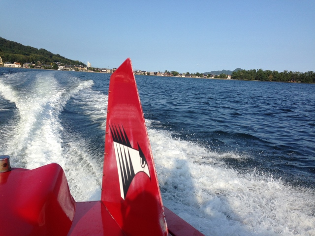 行は自転車で松林をぬけ、帰りはジェットで海から橋立を眺めました。