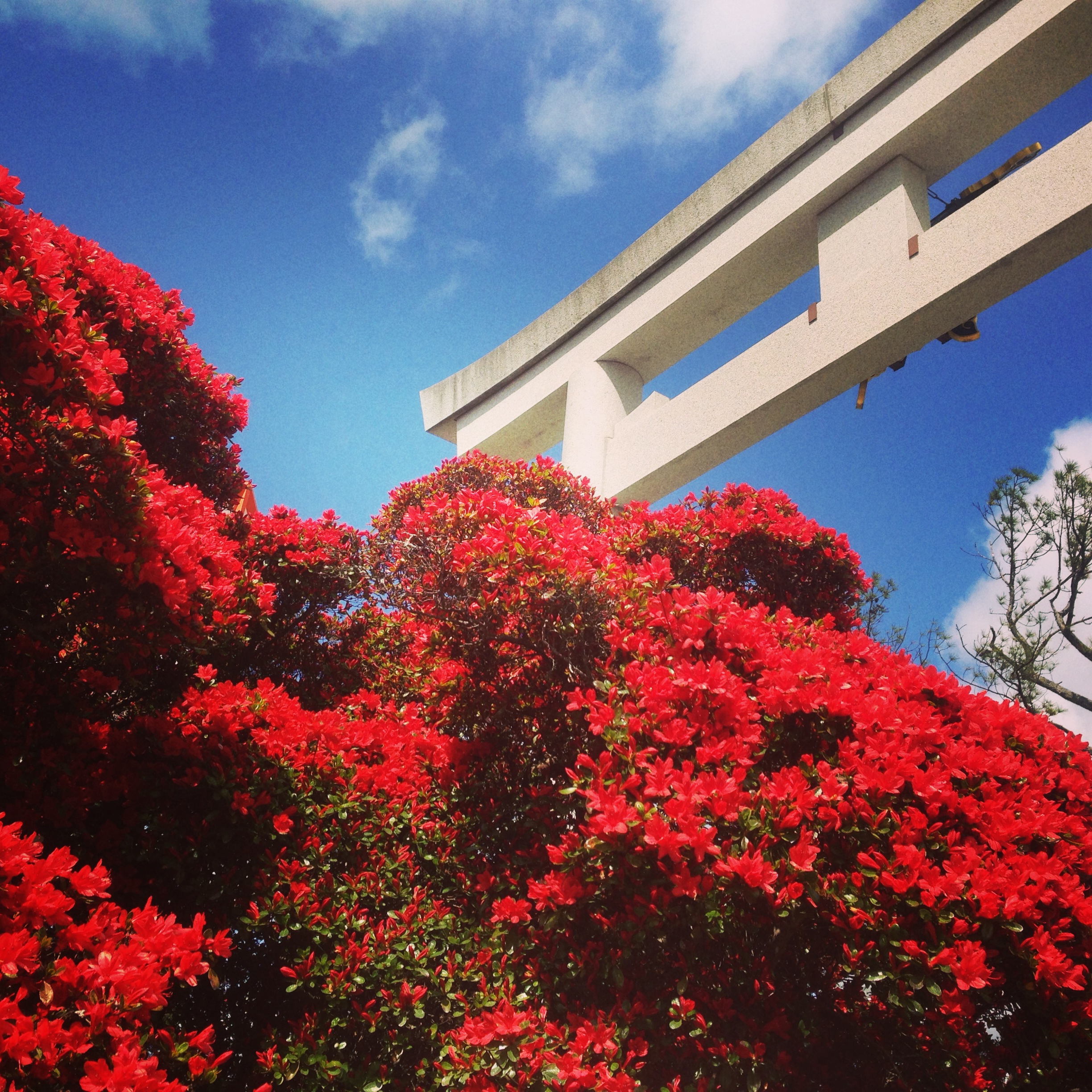 日曜日お天気もよく、青空と赤のつつじがとてもきれいです。