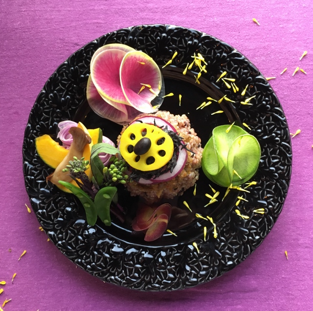 ネオべジ根菜味噌タワー。黒色食材と乾物で体のケアを。