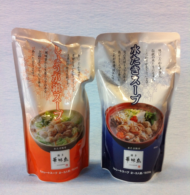 博多 華味鳥 水炊きスープ・しょうが鍋スープ(2〜3人前) 各420円